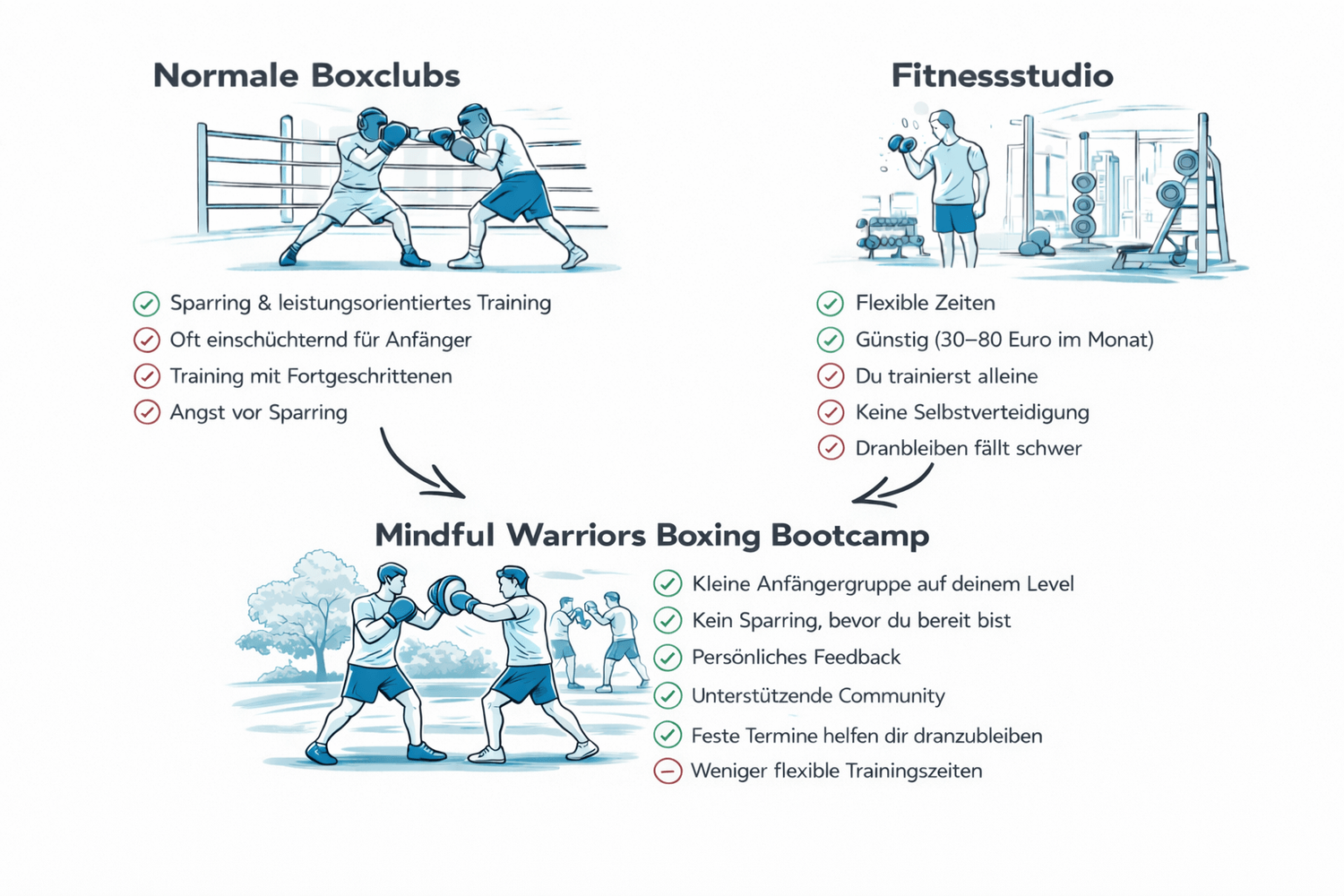 Im Boxing-Bootcamp lernst du, in stressigen Situationen ruhiger und selbstbewusster zu reagieren.